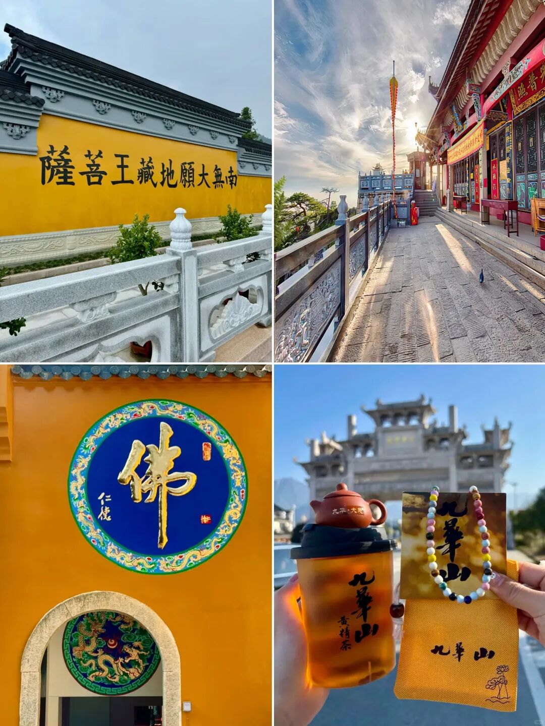 🔷九华山休闲版:早上游客中心乘景交上山→迎仙桥检票口→九华街寺庙群《祇园寺(建筑精美,网红打卡)-法华寺(老财神殿)-化城寺(开山祖寺)-大厦庵(绍华禅师舍利子)-长生庵(祈福许愿)-无量寺(主供毗卢遮那佛)-旃(zhan)檀禅林-上禅堂(历史悠久的滴水观音)-肉身宝殿(金地藏肉身)》→百岁宫(如时间充足可缆车往返游览)→下午迎仙桥乘车原路下山→大愿文化园(99米地藏圣像)→5点停车场集合返程