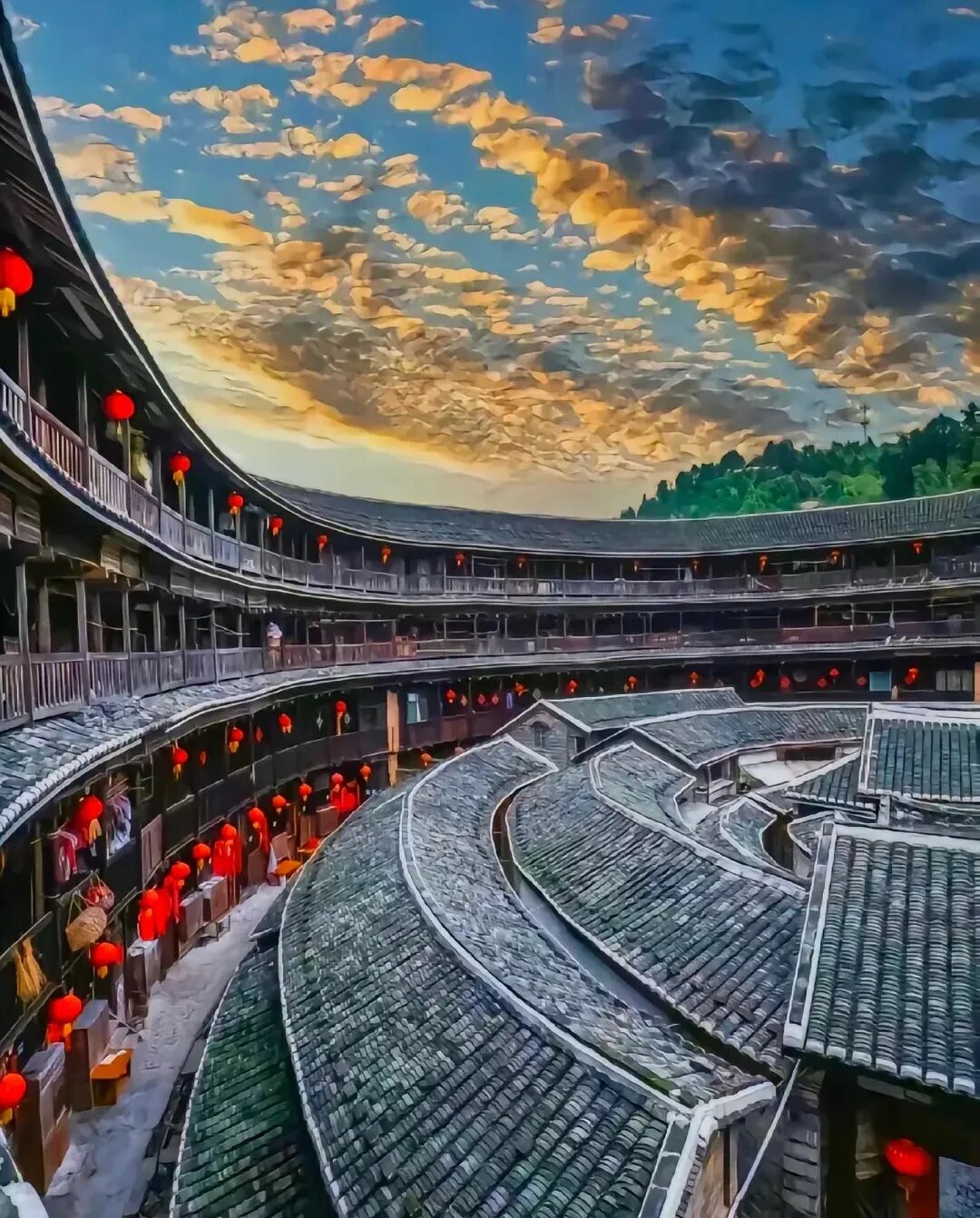 7时早餐后,乘车前往福建南靖县,到达后参观游览“世界文化遗产”【田螺坑土楼群】,是依照《考工记图》中的“明堂五室”进行规划布局,按照“金木水火土”五行相生次序建造一方四圆的土楼(俗称“四菜一汤”:一座方形土楼--步云楼;三座圆形土楼--振昌楼、和昌楼、瑞云楼;一座椭圆形土楼--文昌楼),是独具特色建筑形体组合的经典之作,已成为“福建土楼标志性建筑之一!