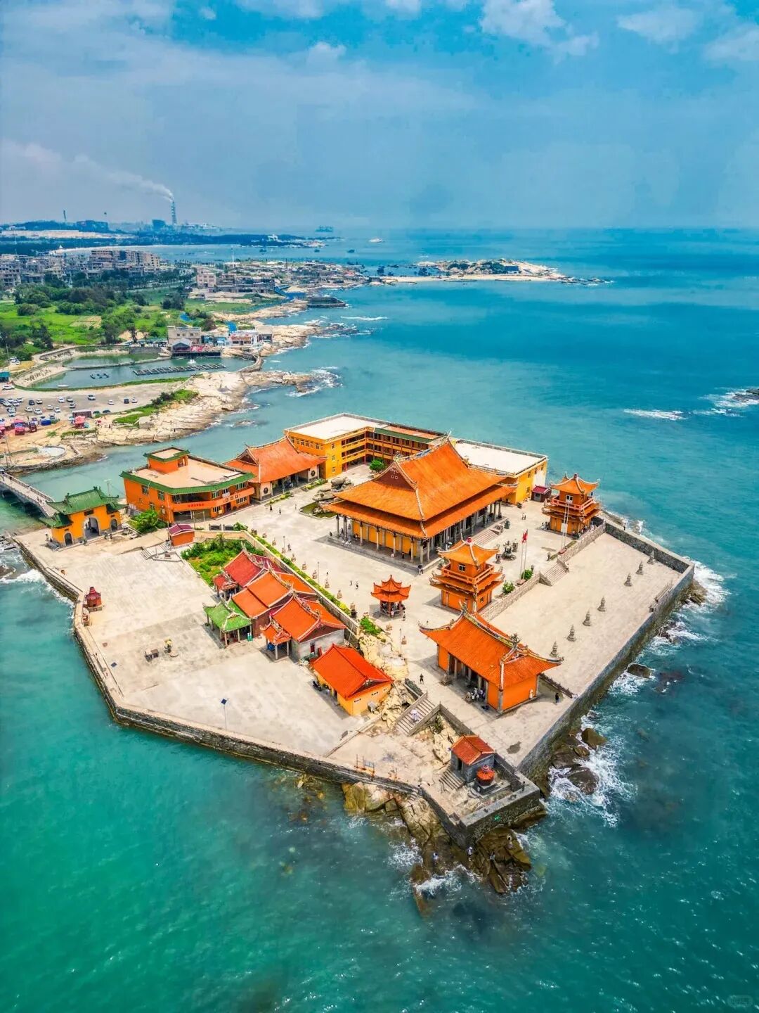 之后前往【黄金海岸】,游览全国唯一的海上寺庙【洛伽寺】,洛迦寺嘉立于海边礁石之上,时不时会有海浪拍打礁石溅起层层浪花。素有“漂浮在海上的寺庙”的美誉,最早于浙江普陀山分灵而来。洛迦寺没有一般深山古刹似的古朴典雅,放眼洛迦寺,崇楼峻阁,琳宇成片轩轾错落,金碧辉煌,以海天为背景,意境开阔。打卡“海上生庙,庙里看海”--“李现”版同款机位!