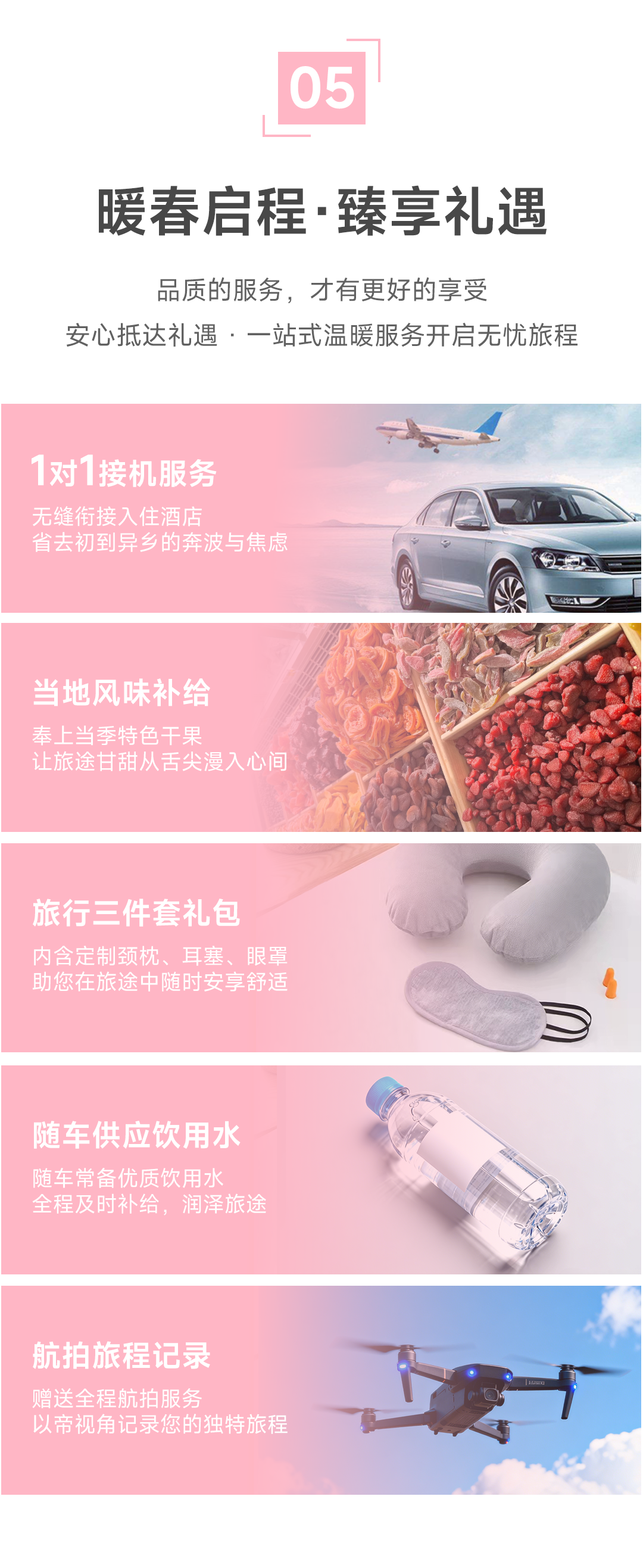 【接送机服务】集合日赠接机,提前抵达自行前往集合酒店集合;解散日酒店全天散团,自行安排返程,打车到机场起步价,我司提供有偿送机服务,如需请联系客服;