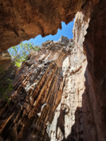 - 潭柘寺天坑并非单纯的天坑,而是一处独一无二的天坑+洞穴复合型地貌奇观。天坑中部有石幔、石帘、石柱、联排石柱、吊灯状石幔,串珠状石帘等。下部是一片石花(类似石花洞的石花)如挂在墙上的绣花壁毯。