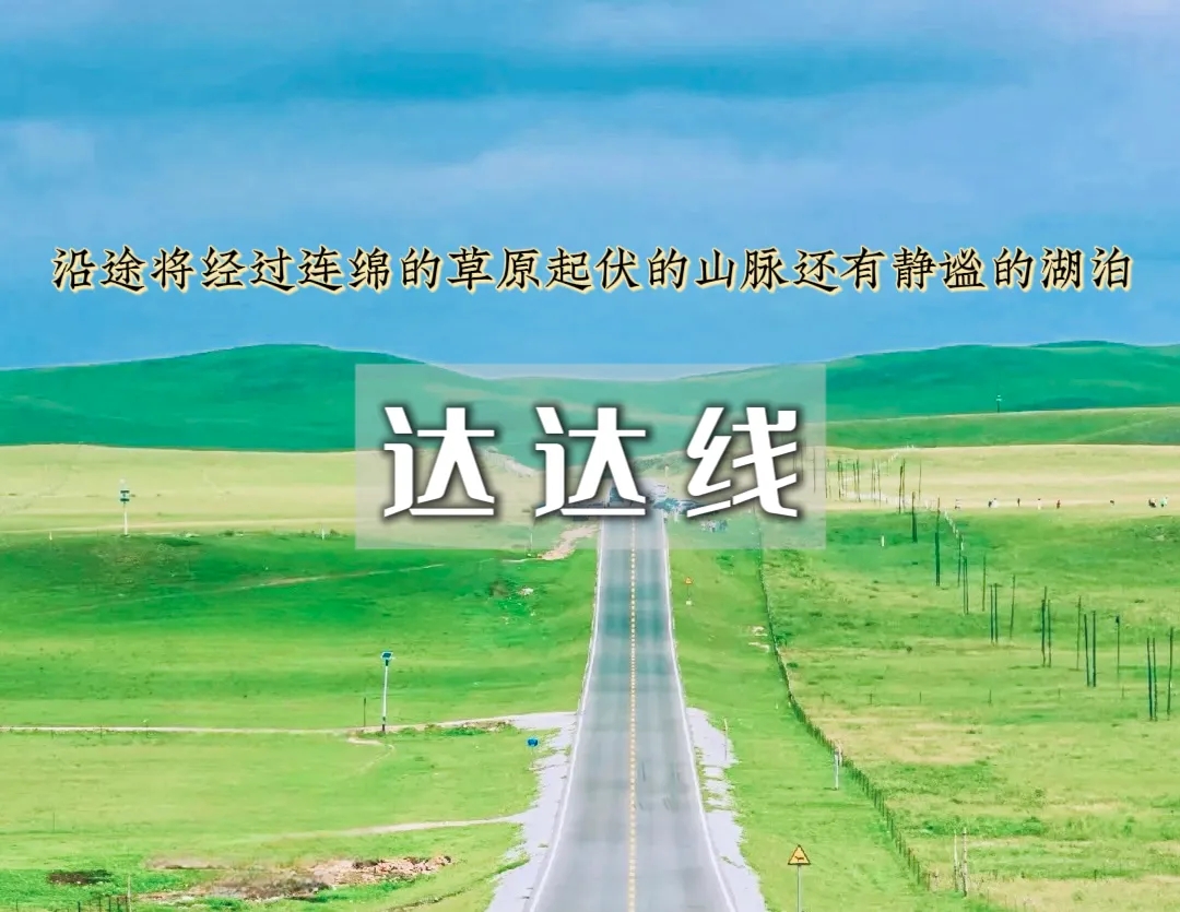 - 达达线“中国北疆风景大道”中国最美自驾线浓缩版!想象一下:把足够多的景观浓缩在百公里的画卷中,这里浓缩了内蒙古风景的精华,湖泊、湿地、草原、森林、沙漠、奇石等景色悉数览尽。随手一拍,便是电脑桌面般的绝美画面。